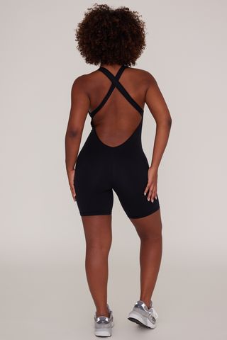 •Criss cross back straps are doubled for maximum support •6" inseam •Full coverage with a low scoop neckline •Contouring seams framing the shape of the bodysuit